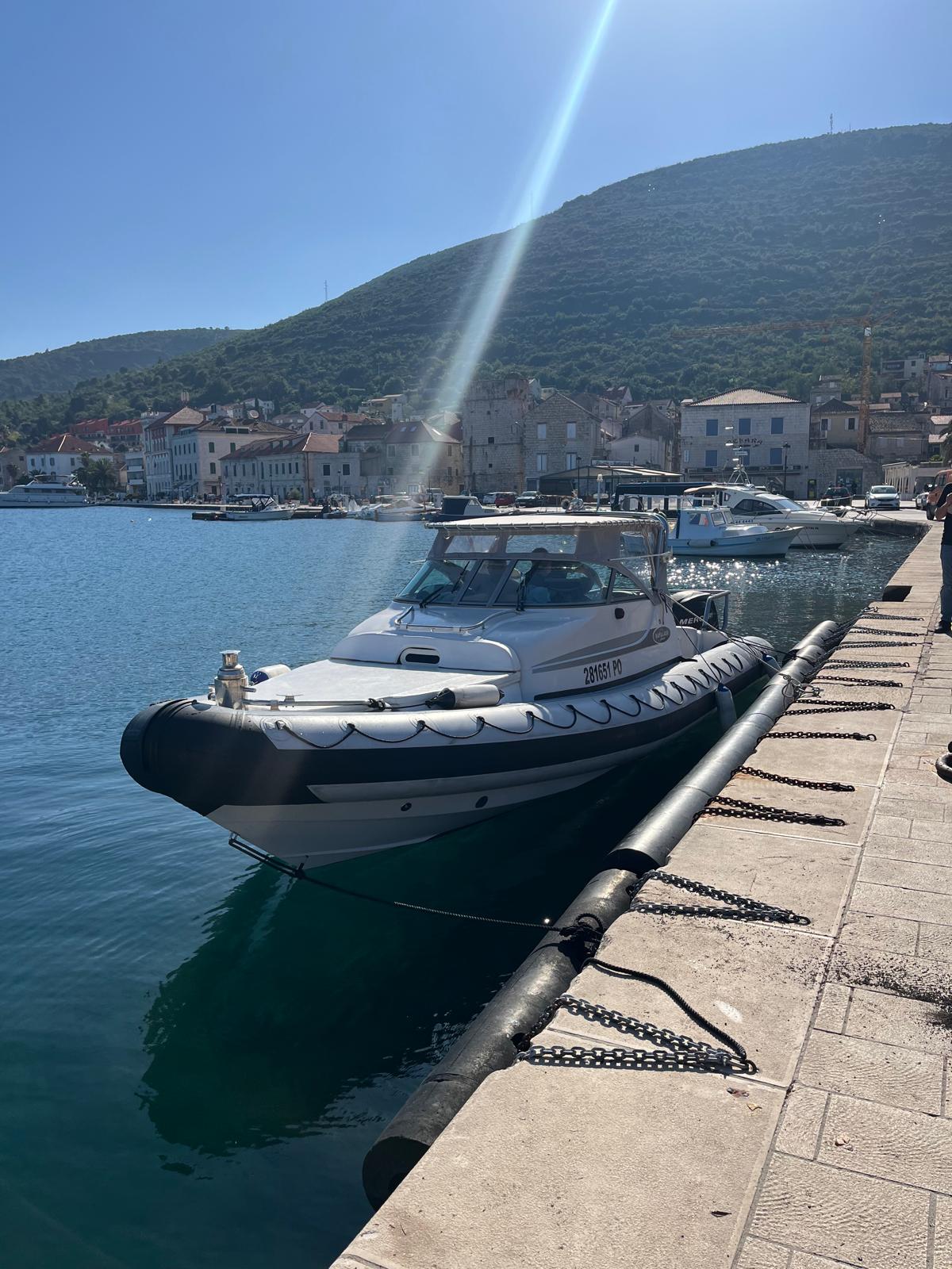 Stiniva Cove — Arriving before the crowds. We use our small rubber dinghy to take you directly to the beach for coffee or snacks. -